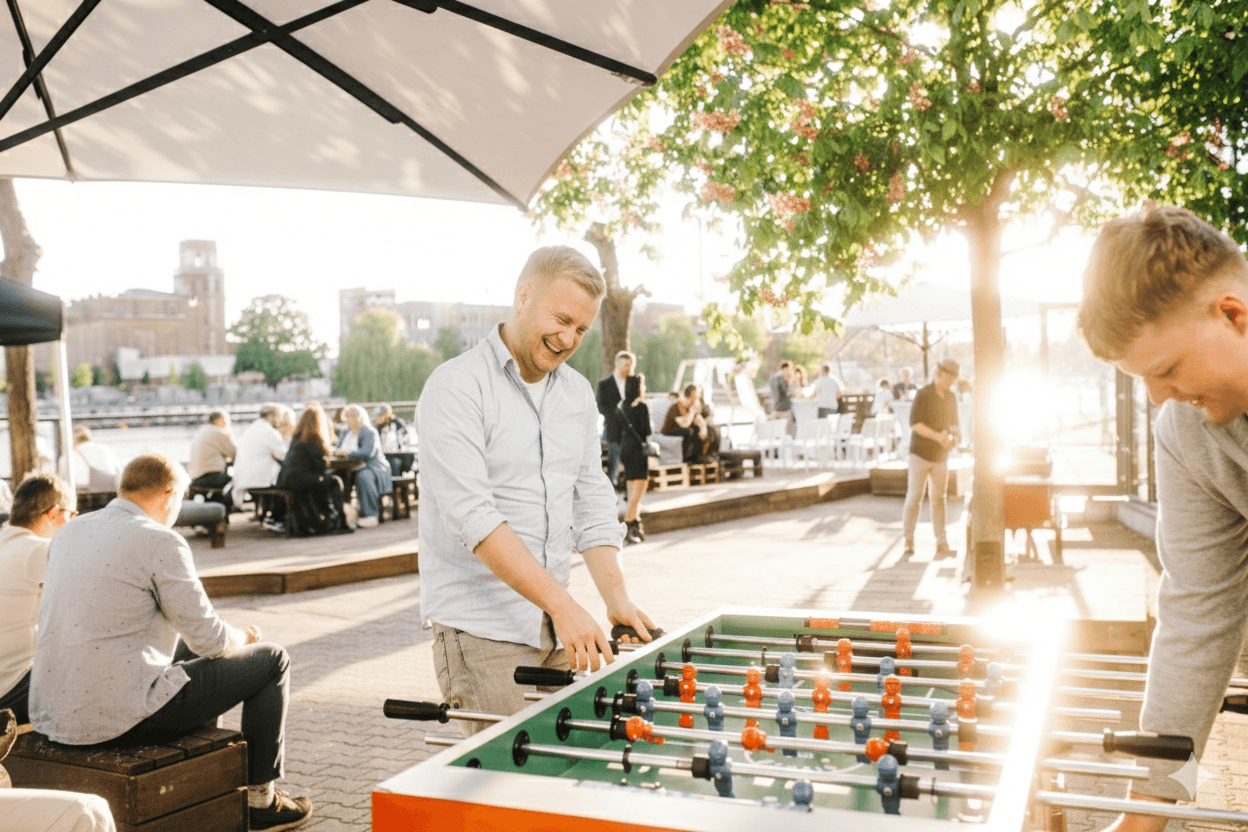 Entdecken Sie eine außergewöhnliche Location für Ihre Unternehmensveranstaltungen – ein Ort, der Eleganz, Professionalität und inspirierendes Ambiente auf einzigartige Weise vereint. Drei stilvoll gestaltete Räume, jeweils mit eigener privater Terrasse und beeindruckendem Blick auf die Spree, schaffen einen exklusiven Rahmen für Veranstaltungen unter freiem Himmel ebenso wie für anspruchsvolle Indoor-Formate.